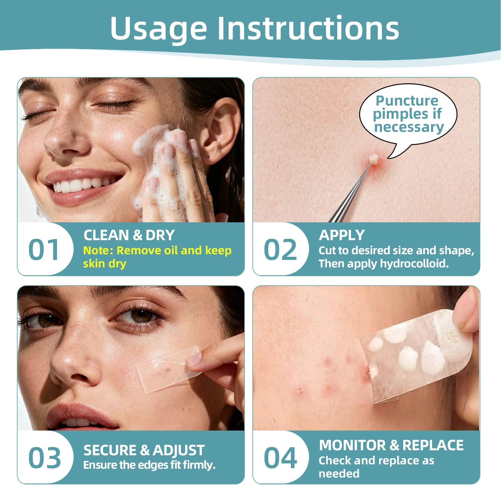 Easy to use: Simply cleanse and dry the skin, apply the hydrocolloid patch, and leave it on overnight. Easy to remove and can be cut to the appropriate size as needed, offering convenience and flexibility.